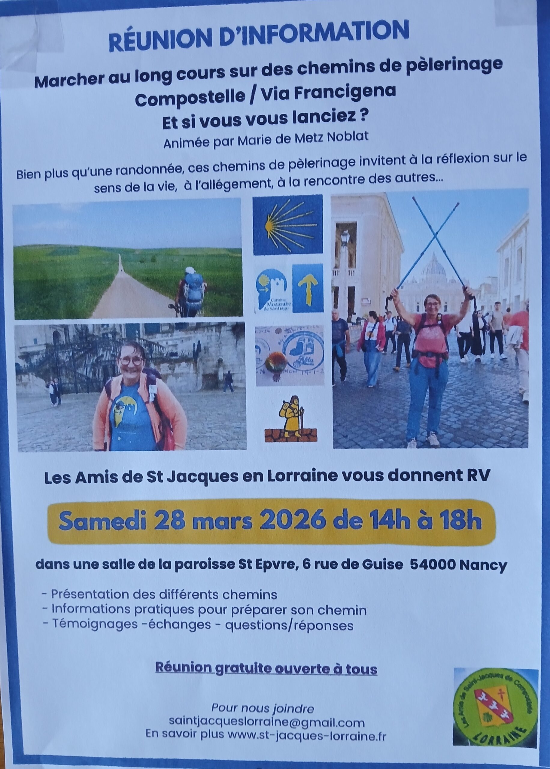 Réunion d’information Compostelle/Francigena à Nancy 28 mars 2026